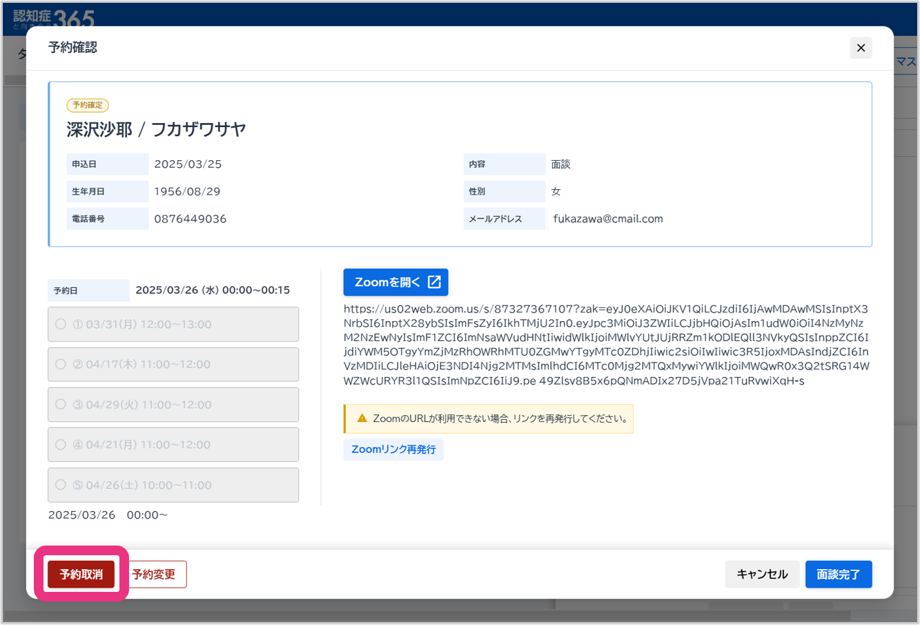 オンライン面談の予約を取消する(作業者:管理者)