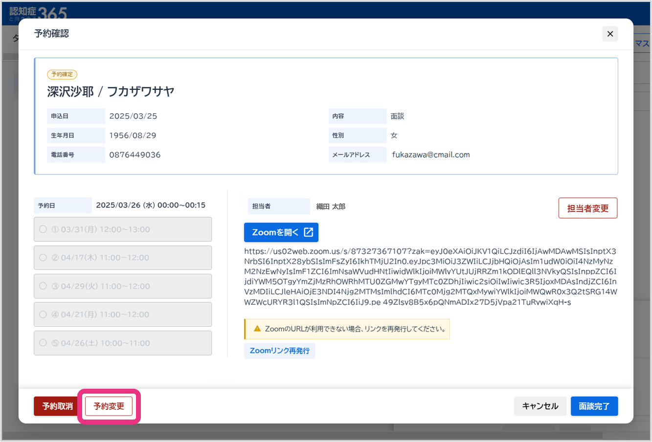 オンライン面談の予約を変更する(作業者:管理者)