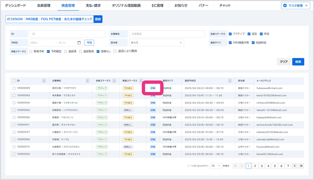 「新規予約」ステータスの面談予約の『詳細』をクリックしてください。