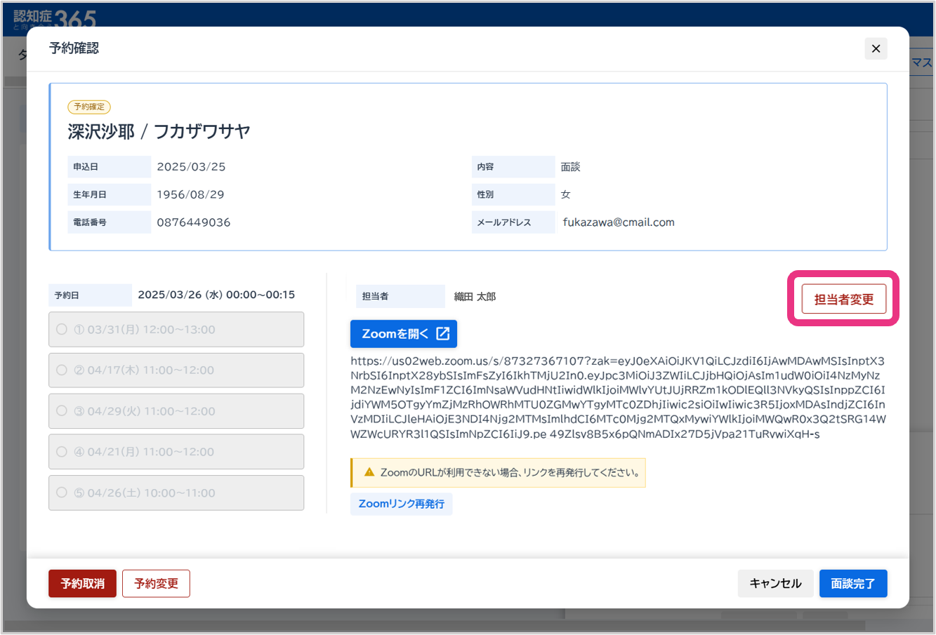 オンライン面談の担当者を変更する(作業者:管理者)