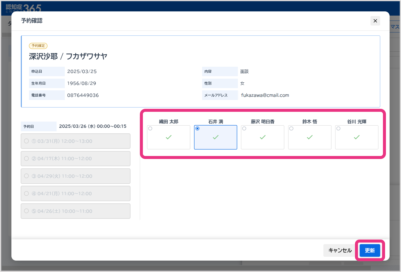 | 担当者 | 面談担当者を選択します。 |