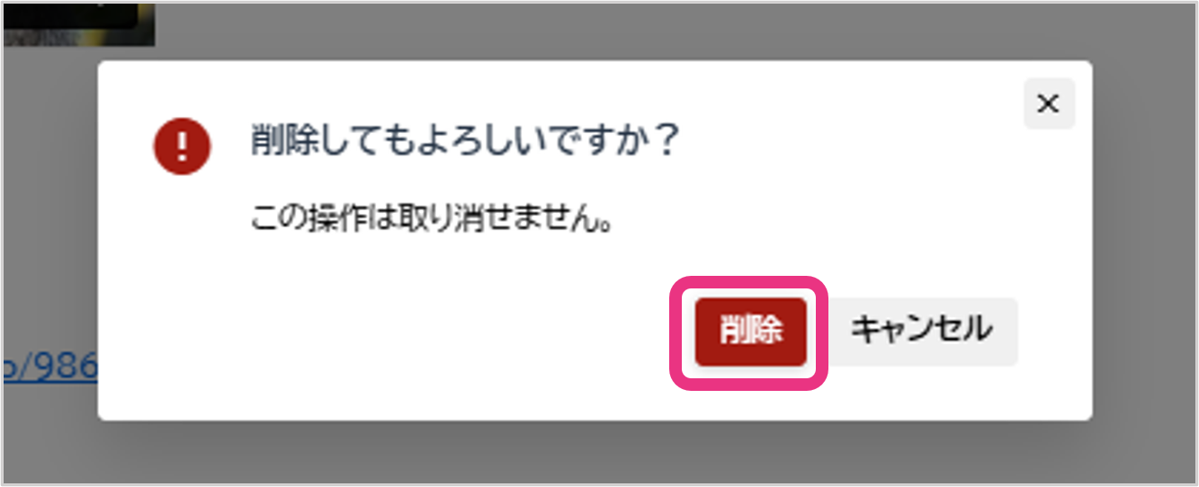 確認画面が表示されますので、『削除』をクリックしてください。落語動画が削除されます。