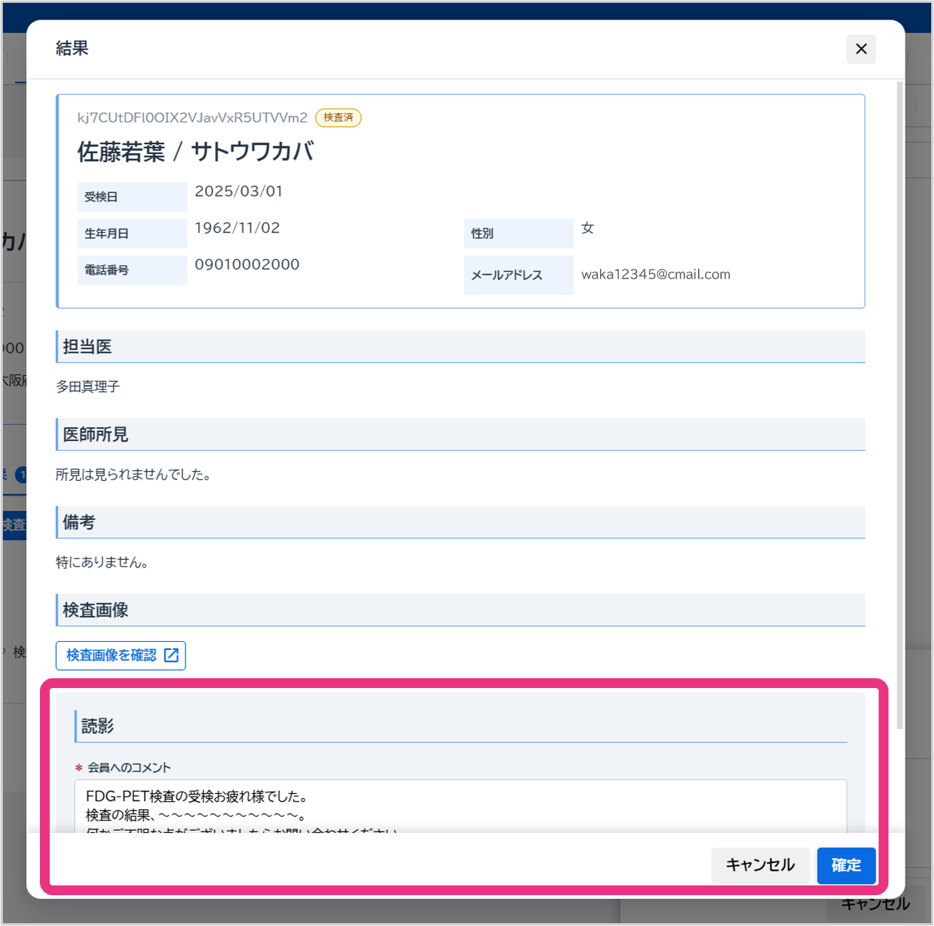 ※読影コメントは結果送信時に会員に公開されます。
